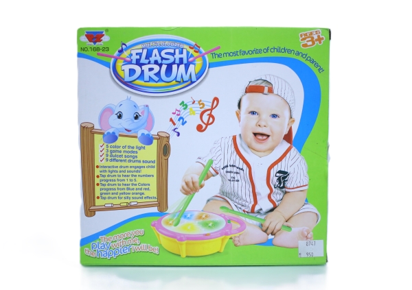 Interactive drum engages child with lights and sound, it would help your child in developing: Visual stimulation, audio stimulation, co-ordination skills and musical skills